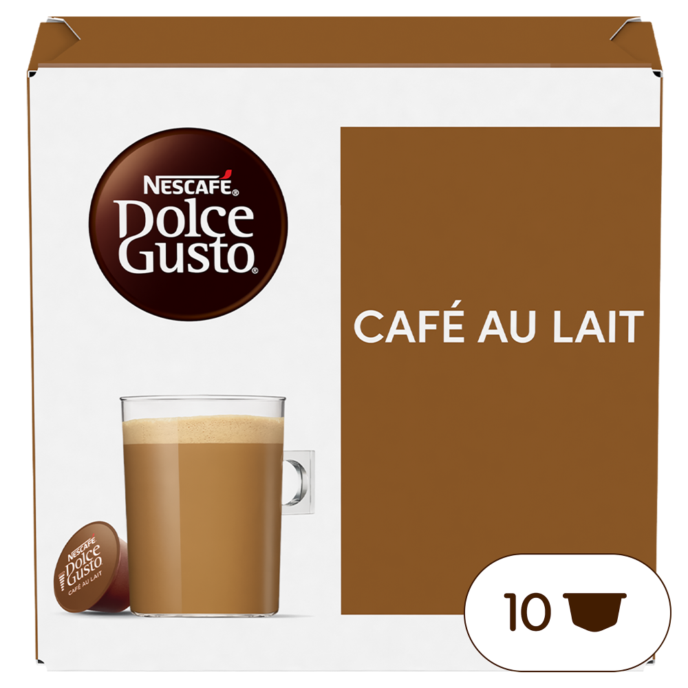 Déjate seducir por el espectacular Nescafé Dolce Gusto Café Au Lait, un café robusta de fuerte carácter combinado con la suavidad de la leche. ¡Y en una sola cápsula! Nuestro café con leche presenta un tueste medio perfectamente equilibrado para acompañarte a iniciar tu día