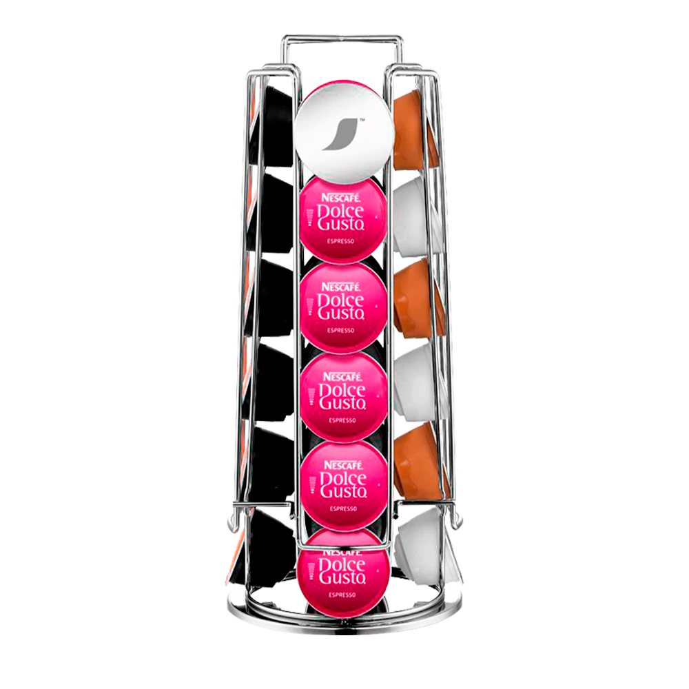 Ten siempre a mano tus cápsulas con este porta cápsulas metálico de diseño. Gira suavemente para dispensar tus cápsulas favoritas con facilidad al mismo tiempo que atrae todas las miradas gracias a su elegante diseño.